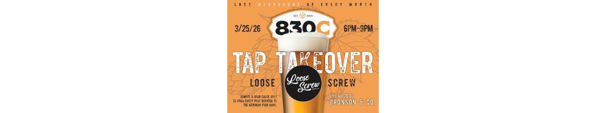 The Cause: Drinking for a good cause! As always, we are proud to donate $2 from every pour directly to the Meridian Food Bank.